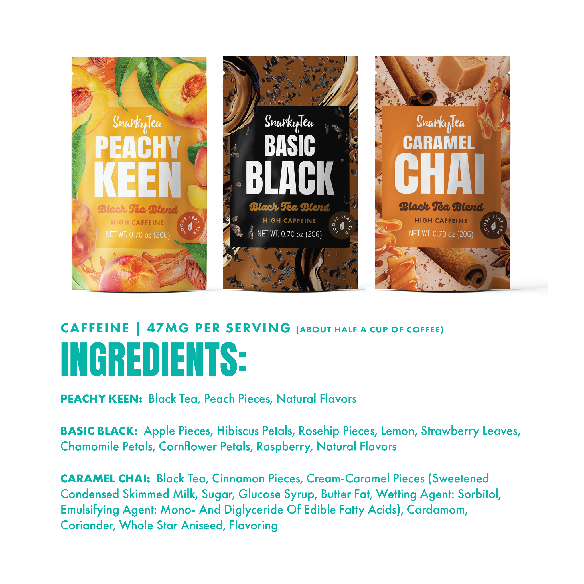 High Caff Trio: Basic Black, Caramel Chai, Peachy Keen