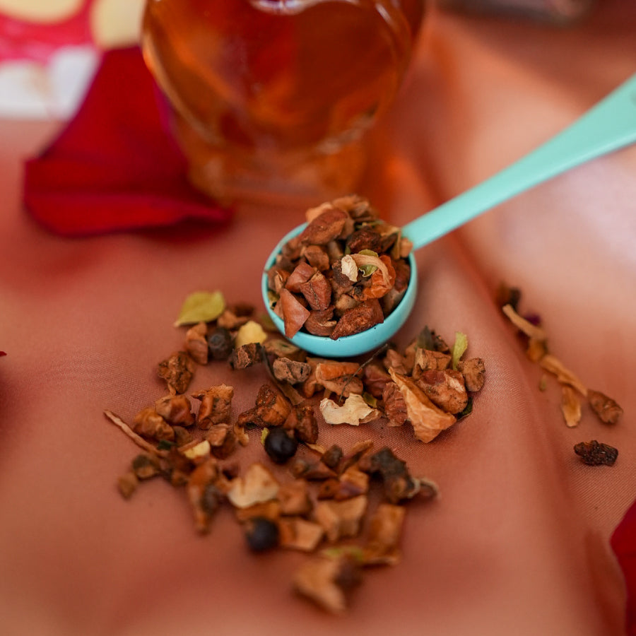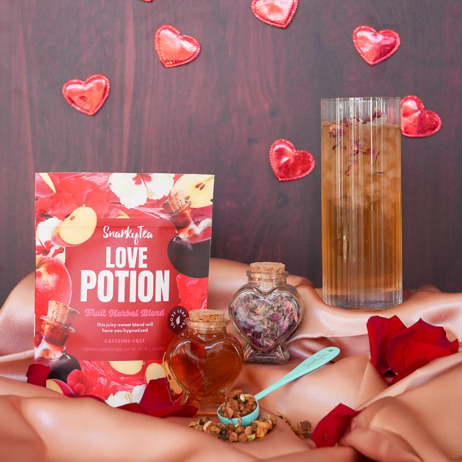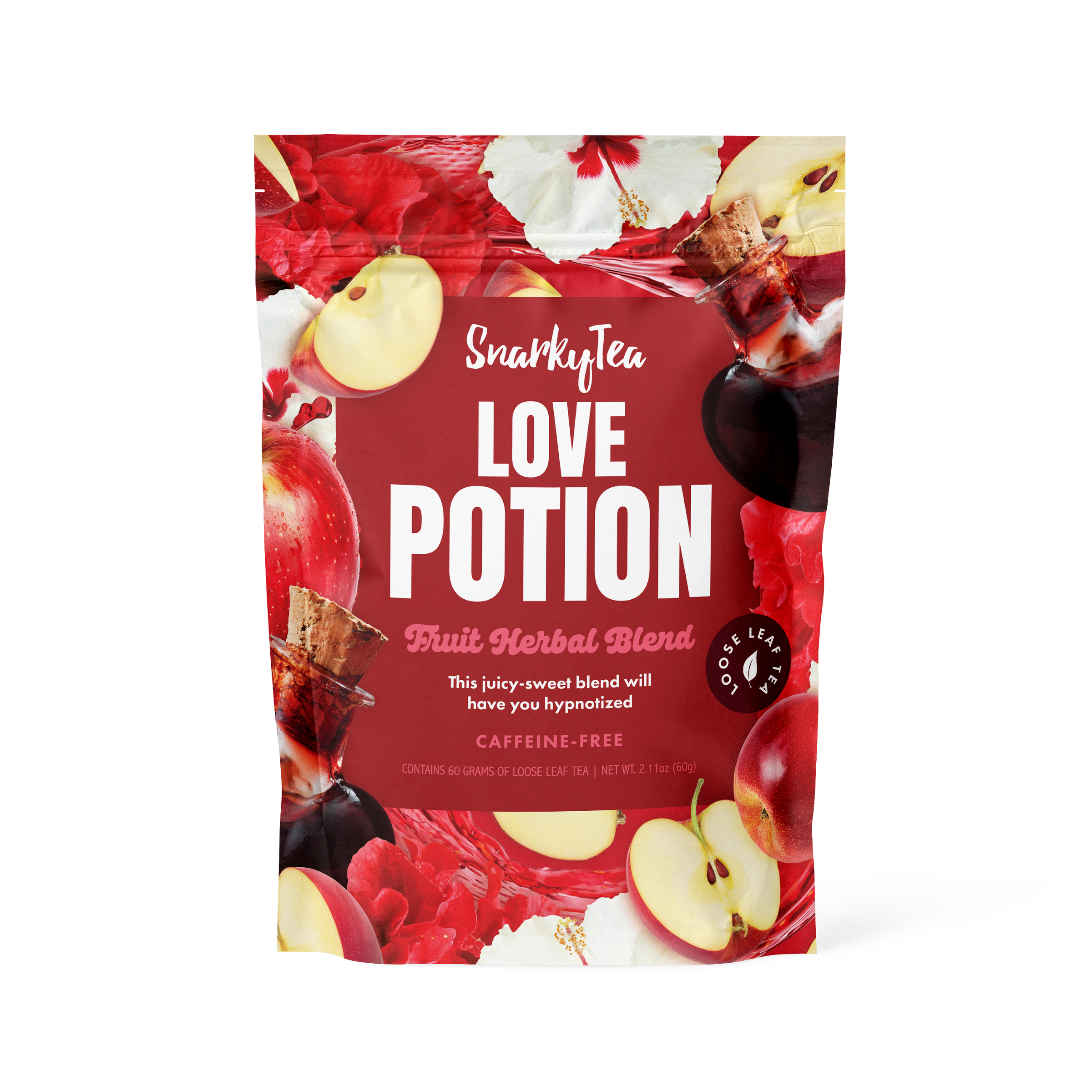 Bursting with juicy apple, tangy hibiscus, and sweet blackberry leaves, this blend gets a flirty twist from passionfruit, juniper berries, and a sprinkle of tulsi magic. A little bright, a little bubbly, and totally crush-worthy, Love Potion is like a Valentine in a mug.