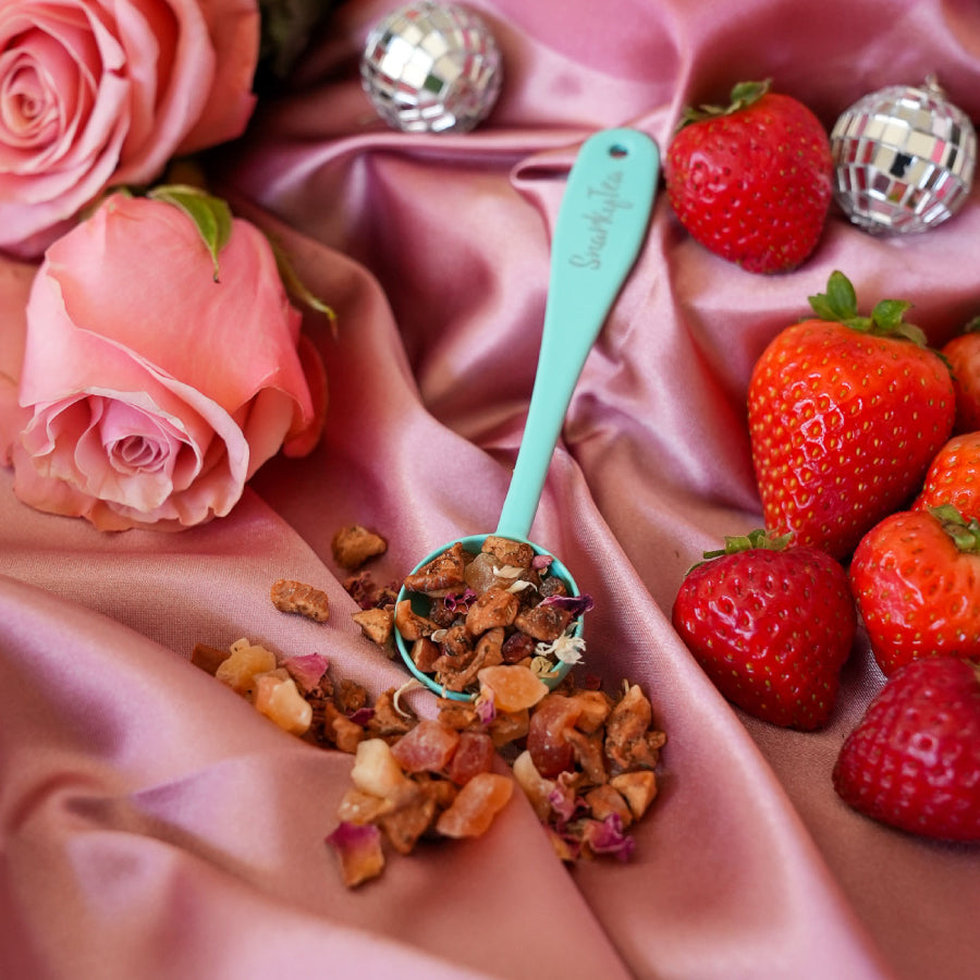 With juicy apple, sweet papaya, and flirty freeze-dried strawberries, this blend sparkles with fruity charm. Rose petals and cornflower blossoms bring the romance. This blend is light, refreshing, and totally crush-worthy.