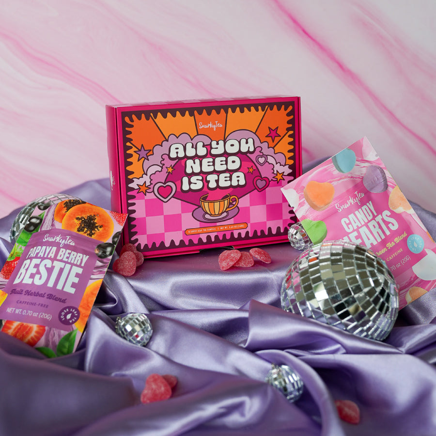 This groovy sampler box is full of bold colors and blends that are sure to leave you feelin' groovy. Turn up the tunes, pour yourself a cup, and remember - all you need is tea! 🫖✨