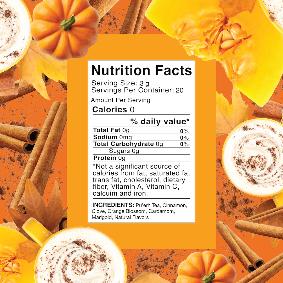 Ingredients: Pu'erh, Cinnamon, Clove, Orange Blossom, Cardamom, Marigold, Natural Flavors.