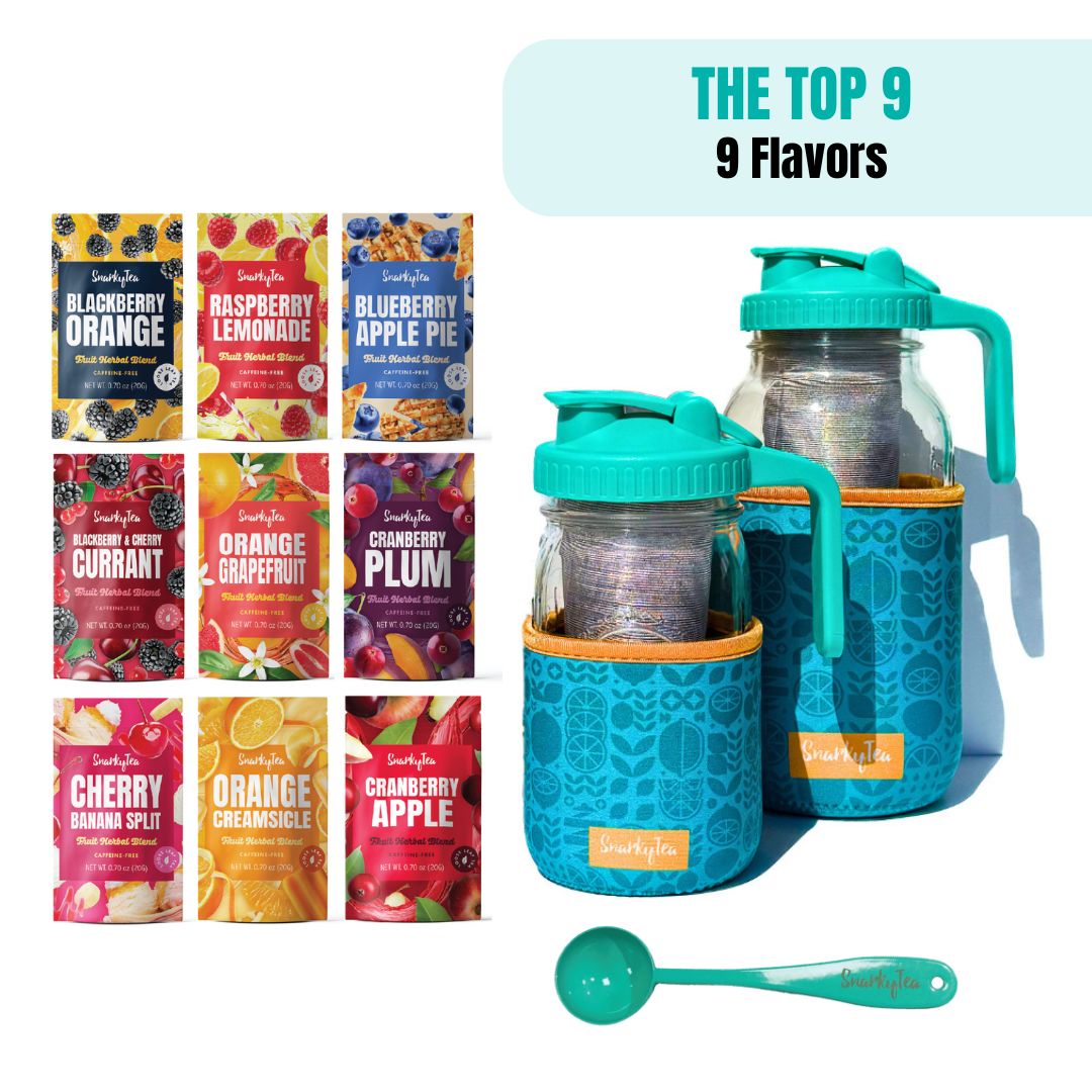 9 Flavors - "The Top 9" All Flavors Above + Cherry Banana Split, Cranberry Apple, Orange Creamsicle, Blackberry & Cherry Currant, Cranberry Plum, Orange Grapefruit (all caff-free) SAVE 38%