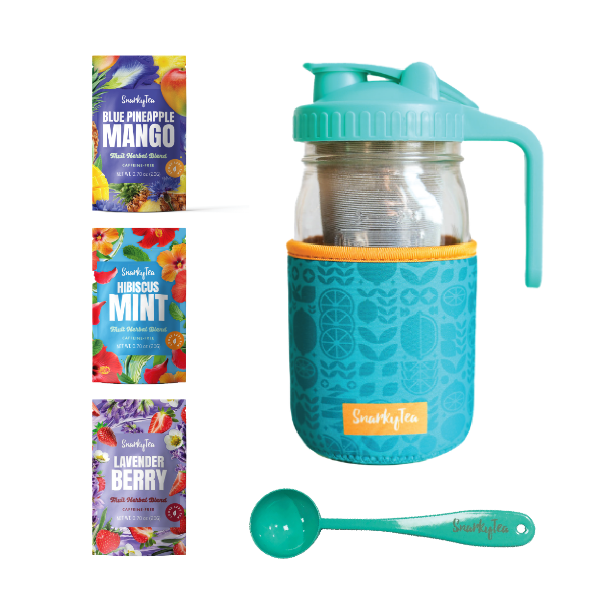 - Tropical Trio: Blue Pineapple Mango, Lavender Berry, Hibiscus Mint (caffeine-free)